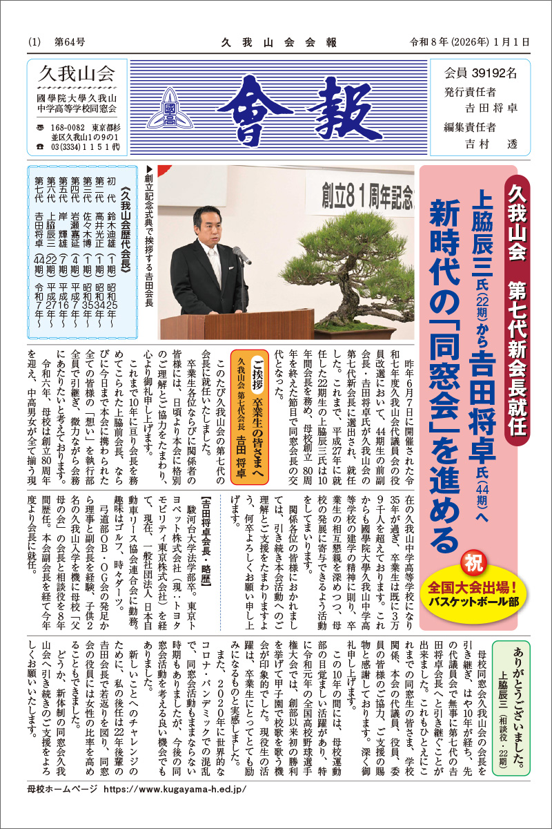 「久我山会会報」第64号(令和8年1月1日号)を発行しました。
