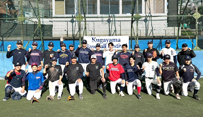 パーティーに先立ち、國學院大学硬式野球部グラウンドで「第3回久我山ベースボールフェスティバル」を開催。令和5年から恒例となったこの催しでは、還暦を迎えたOBから現役大学生OBまでが一堂に会し、世代を超えて野球を楽しみました。久我山ならではの絆を感じる光景となりました。